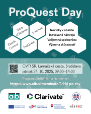 Clarivate, Centrum vedecko-technických informácií SR a Albertina icome Bratislava vás srdečně zvou na setkání pro uživatele informačních zdrojů a nástrojů na platformách ProQuest a Web of Science.