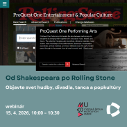 V ProQuest One Performing Arts je určená pre štúdium a výskum hudby, tanca, divadla a filmovej produkcie. Na jednom mieste nájdete: