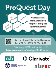 Clarivate, Centrum vedecko-technických informácií SR a Albertina icome Bratislava vás srdečne pozývajú na stretnutie používateľov informačných zdrojov a nástrojov na platformách ProQuest a Web of Science.